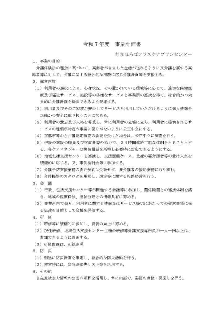 TOP » 令和7年度事業計画(桂まほろばテラス)